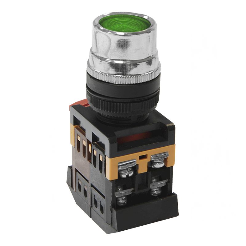 Кнопочный выключатель ABLF-22 зеленая с подсветкой 1з+1р 230В