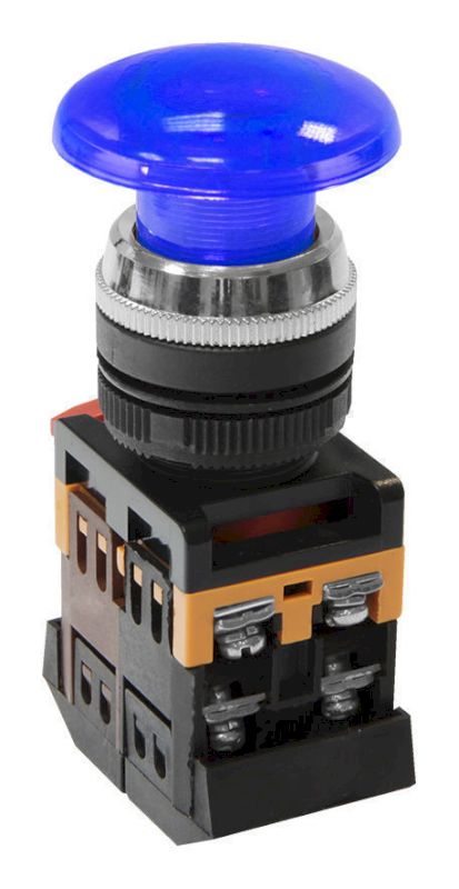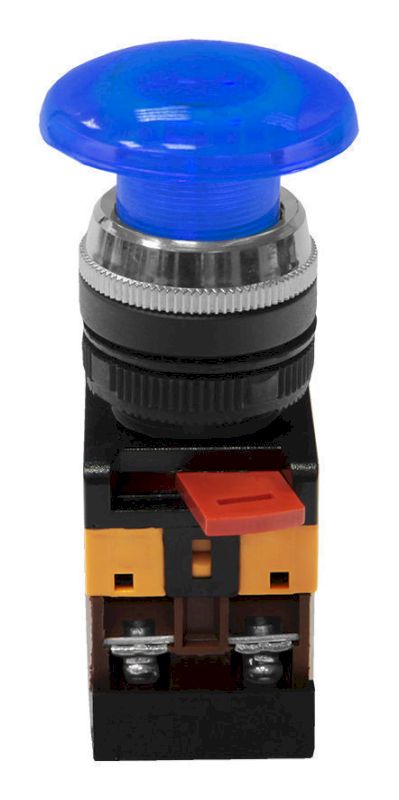 Кнопочный выключатель AELA-22 синий гриб с подсветкой 1з+1р 230В