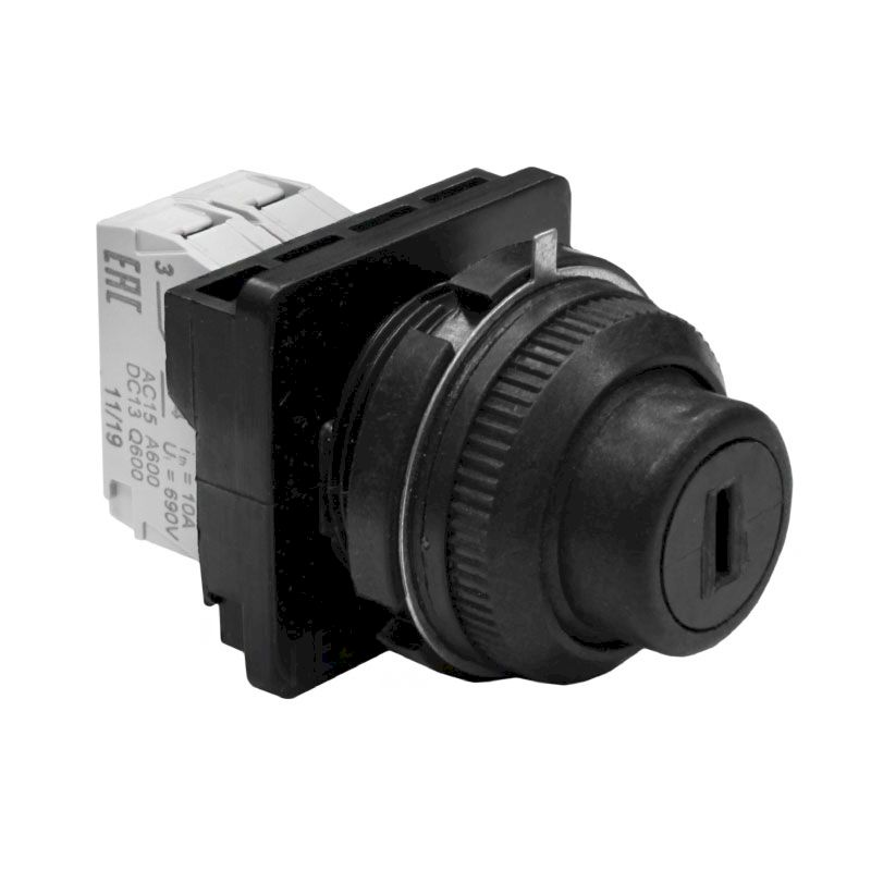 Переключатель управления ПЕ 211/1 ключ на два положения с фиксацией, "0"-вертикально, виброзащита, 2з+0р, 10А, диаметр посадочного отверстия 30мм, УХЛ3, IP40