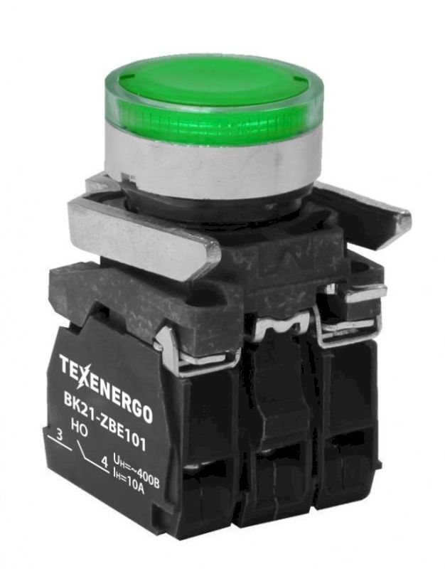 Выключатель кнопочный ВК21-ВW33B5 1з+1р зелёный, подсветка светодиод 24В AC/DC
